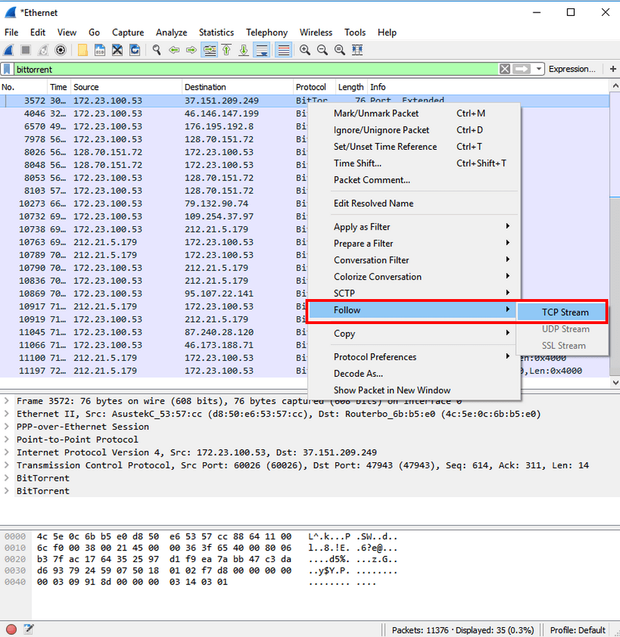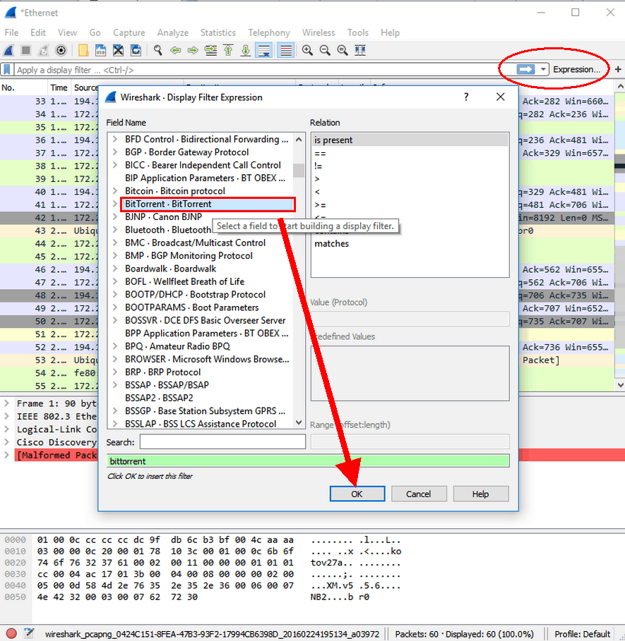 Припустимо, вам необхідно відсіяти все зайве і проаналізувати протокол «Bittorrent».