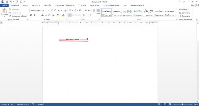Розрив в офісному редакторі 2013 року випуску являє собою знак, який позначає зазвичай новий абзац. Якщо клікнути на цей знак, то виконається спеціальна команда, відповідна певних дій, а саме вчинення розриву. Згодом це все буде застосовано до всього тексту, який розташовується на різних сторінках.