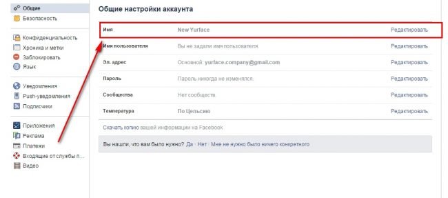 Увійдіть у загальні настройки, а потім клікніть по розділу “Основні параметри” і з’явилося поле “Ім’я” виправте ім’я користувача. Натисніть на кнопку збереження і чекайте перевірки системи.