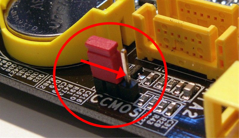 У деяких випадках (актуально для стаціонарних модифікацій ПК) можна скинути БІОС налаштувань до значень за замовчуванням шляхом представлення спеціальних перемичок (активація кнопки «RESET CMOS»). Згідно з експлуатаційними правилами, котрі передбачає виробник, знайдіть на материнській платі спеціальні штирі і перевстановіть джампер на одну «штырьковую» позицію вперед. Через 30 секунд поверніть перемичку в її вихідне положення (детальніше тут).