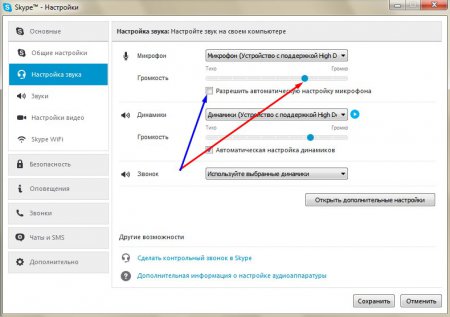 Йдемо далі. Швидше за все, біля напису «Дозволити автоматичну настройку мікрофона» у вас встановлений прапорець. Це звичайно дуже добре, що програма сама налаштовує гучність мікрофона, але іноді потрібно все відрегулювати самостійно.