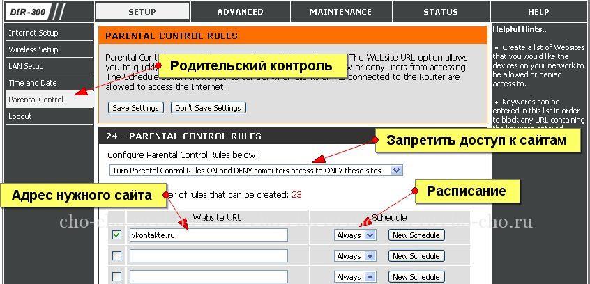 Опція батьківського контролю встановлює заборону на доступ до створеного переліку веб-ресурсів. З представленого списку слід вибрати включення (Turn Parental Control ON) або відключення (Turn Parental Control OFF) батьківського контролю.