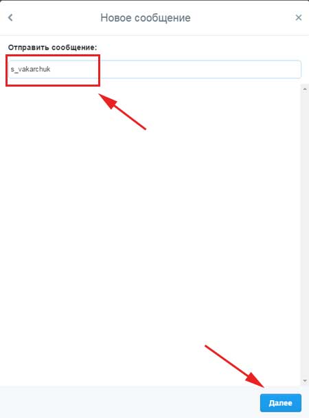 Далі в рядку пишемо ім’я користувача людину, якій будемо відправляти повідомлення: