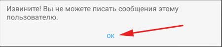Якщо ви спробуєте надіслати повідомлення людині, яка вас не читає, то отримаєте наступне повідомлення про те, що це зробити неможливо.