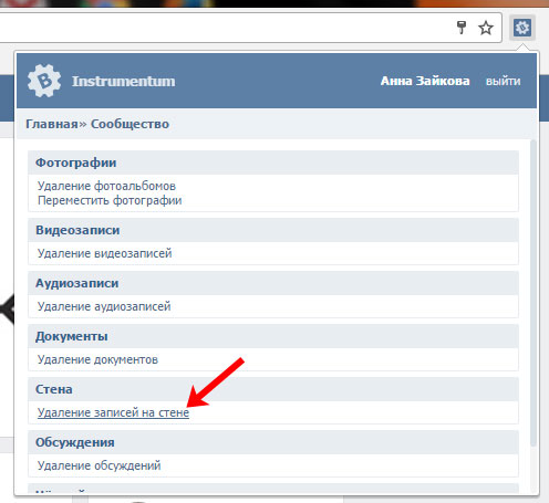 На цьому все, записи зі стіни в групі Вконтакте ми видалили. Більш того, тепер у Вас встановлено цікаве розширення, в якому є безліч інших функцій, але якщо воно більше не потрібно, то можете видалити розширення в Хромі.