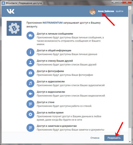 Повинно з’явитися наступне вікно. Зверху справа Ви побачите свою аватарку і ім’я профілю. Щоб розширення отримало доступ до Вашого облікового запису, натисніть на кнопочку «Дозволити».