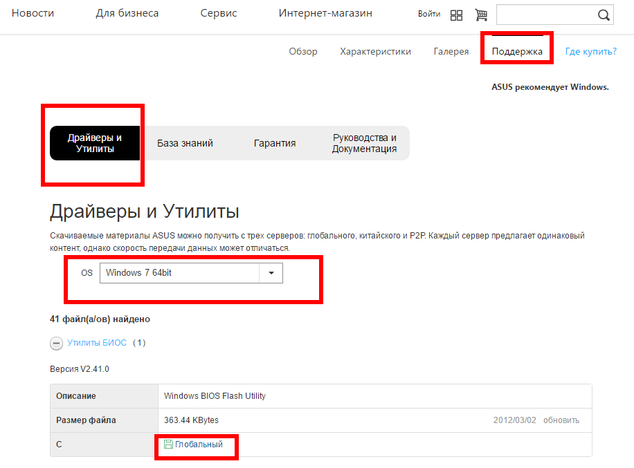 Безумовно, на офіційному сайті виробника. Через різноманіття модифікацій лептопів, вибір відповідної версії базової мікросистеми повинен бути заснований на точній вказівці моделі вашого ноутбука, версії ОС, а також повну відповідність її розрядності (32х-64х). Іноді потрібно вказати тип процесора, яким оснащений ваш лептоп.
