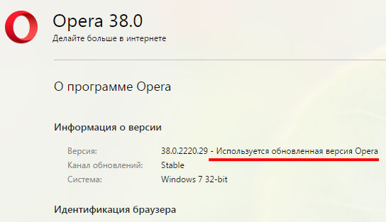 Якщо встановлена остання версія браузера, з’явиться напис: «Використовується оновлена версія Opera». У цьому випадку, робити більше нічого не потрібно.