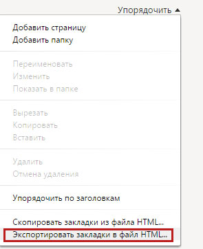 З випав списку вибираємо пункт «Експортувати закладки в файл HTML…»: