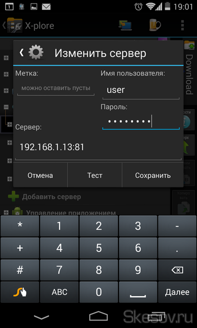 3) Вводимо адресу сервера, логін і пароль. Мітка — це ім’я, яке буде відображатися в списку X-plore. Тиснемо кнопку зберегти: