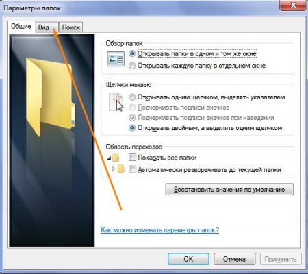 2. Потім, у вікні “Параметри папок” перейдіть в кладку “Вид“.