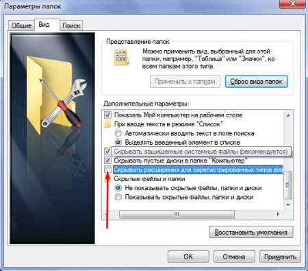Якщо ви хочете, щоб приховані розширення імені файлів завжди були видно необхідно: