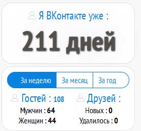 Відразу після запуску програми вам висвічується кількість днів, які ви вже зареєстровані в соціальній мережі Вконтакте.