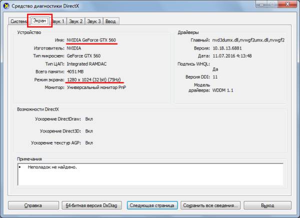 - модель відеокарти;