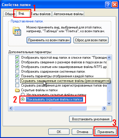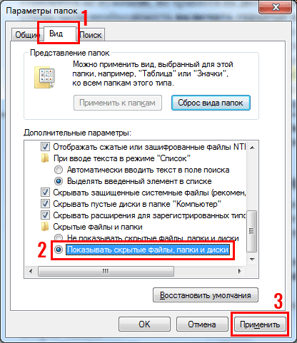 І третій спосіб включити відображення прихованих файлів в Windows 7: