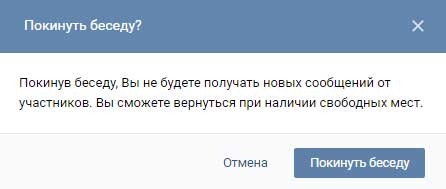 Також слід зазначити, що в покинуту бесіду все ще можна повернутися. Докладно про те, як це зробити, написано в статті, як повернутися в бесіду в Вк.
