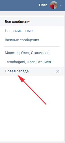 Вони всі подгрузились у мене в правому меню. Мені потрібна «Нова бесіда», саме на неї я і натискаю: