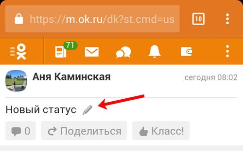 Як змінити статус в Однокласниках мобільна версія