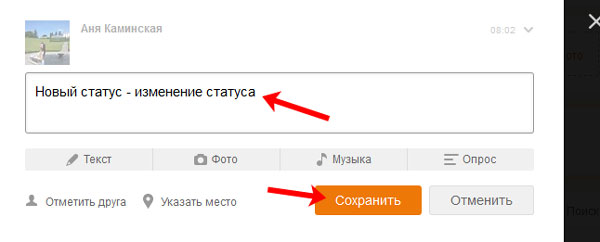 Змінити статус в Однокласниках на своїй сторінці