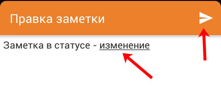 Тепер можете змінити текст примітки. Потім натисніть на стрілку в правому верхньому куті, щоб її опублікувати.