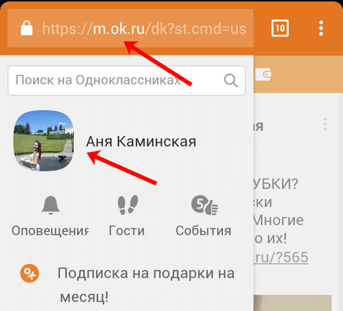 Якщо Ви заходите в Однокласники через браузер в телефоні або планшеті, використовуючи мобільну версію сайту в адресному рядку замість ok.ru буде m.ok.ru змінити статус можна наступним чином. Відкрийте бічне меню і клацніть по головному фото свого профілю.