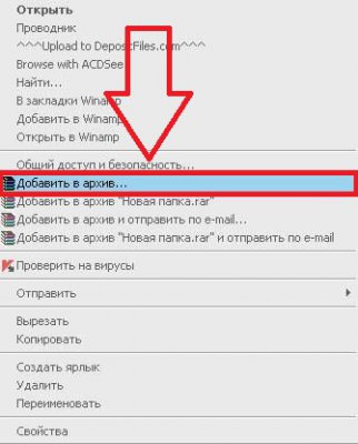 Вибираємо необхідну папку, натискаємо праву кнопку миші і вибираємо пункт «Додати до архіву».