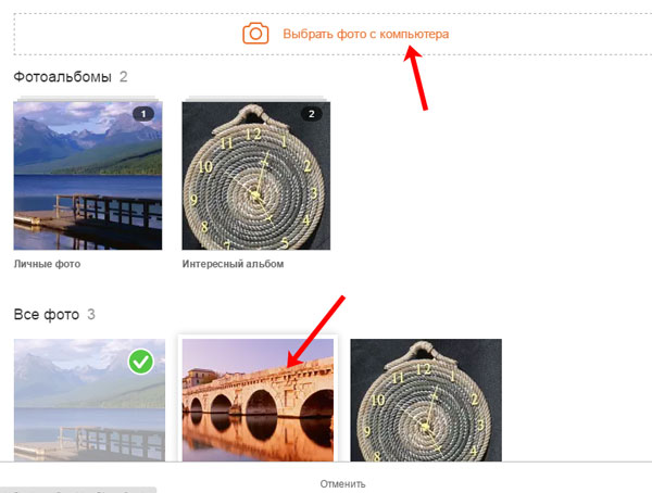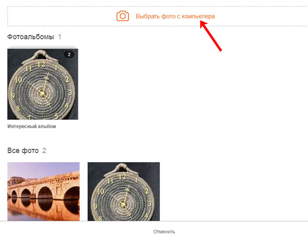 Якщо у завантажених фото ви не знайшли потрібний, тоді прочитайте статтю як додати фото в Однокласники.