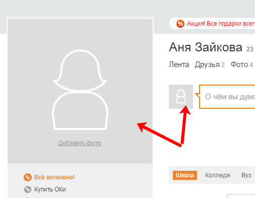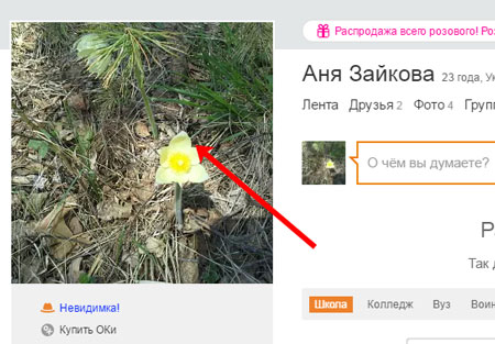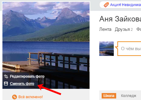 Щоб встановити фото в Однокласниках на головну сторінку, натисніть на зображення аватарки.