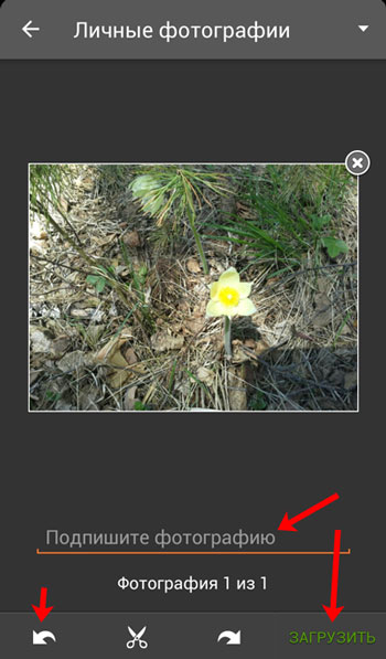 Підпишіть фотографію, якщо потрібно, можете перевернути і натисніть кнопку «Завантажити».