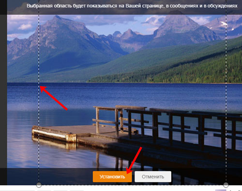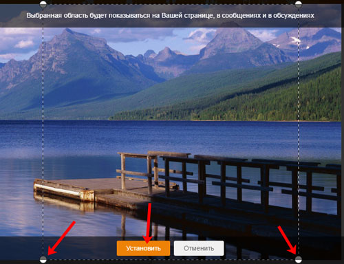 Далі виберіть область, яку буде відображатися на сторінці, у повідомленнях і обговореннях. Для цього перетягніть саму область, виділену пунктиром, і перетягніть маркери по кутах, зменшуючи або збільшуючи її.