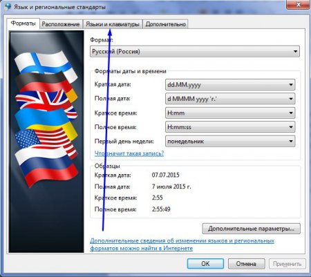 2. Відкриється відповідне вікно «Мова і регіональні стандарти», в якому присутня чотири вкладки. Вам необхідно перейти у вкладку «Мови і клавіатури».