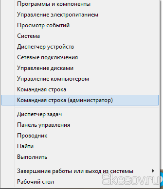 1) Відкриваємо командую рядок від імені адміністратора, для цього тиснемо поєднання клавіш Win+X і вибираємо «Командний рядок (адміністратор)«.