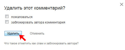 Якщо ж Ви просто хочете видалити коментар, то не позначте галочками ніякої пункт, а просто підтверджуйте видалення, натиснувши на кнопку «Видалити».