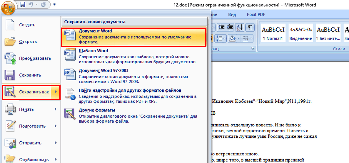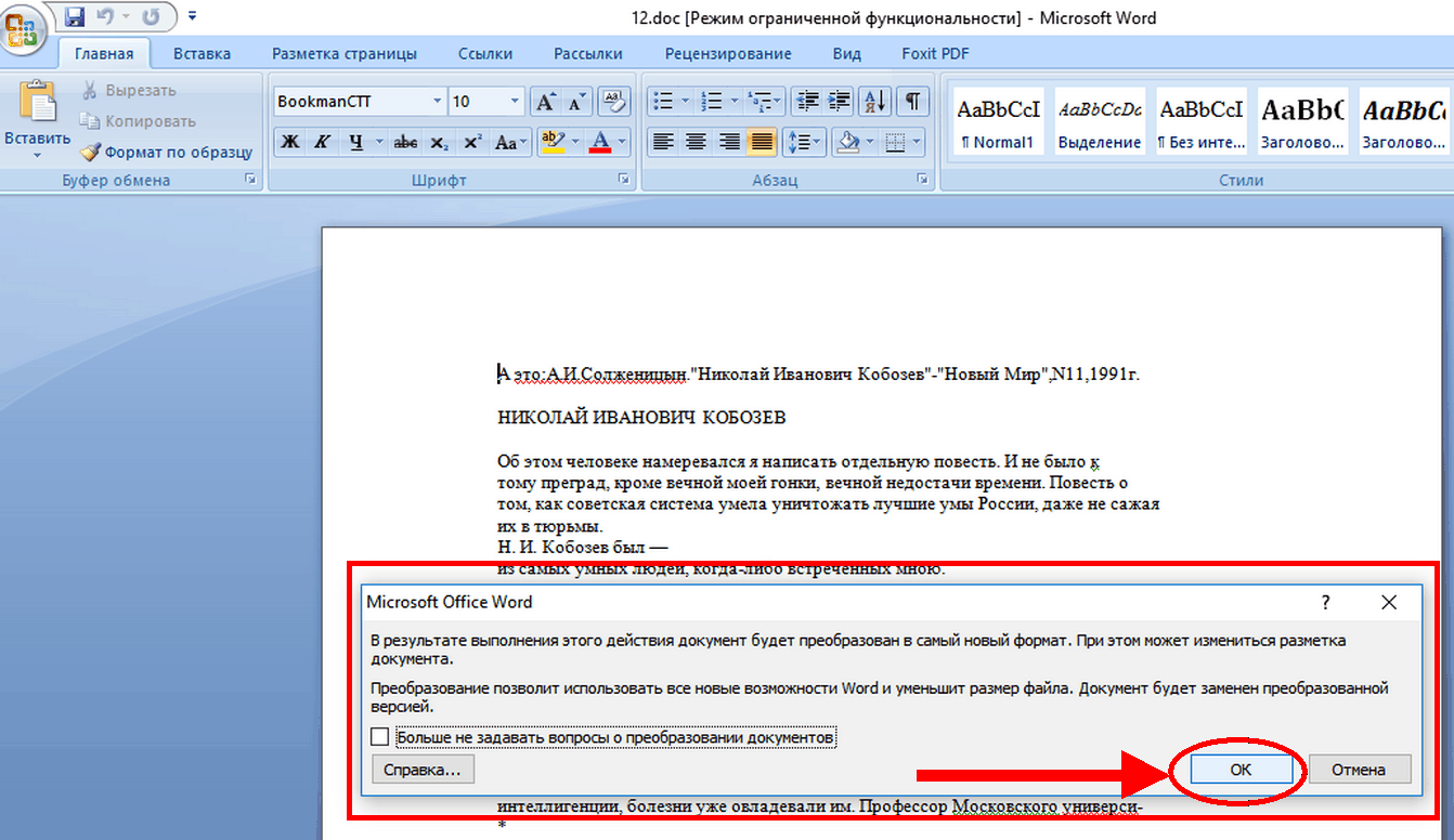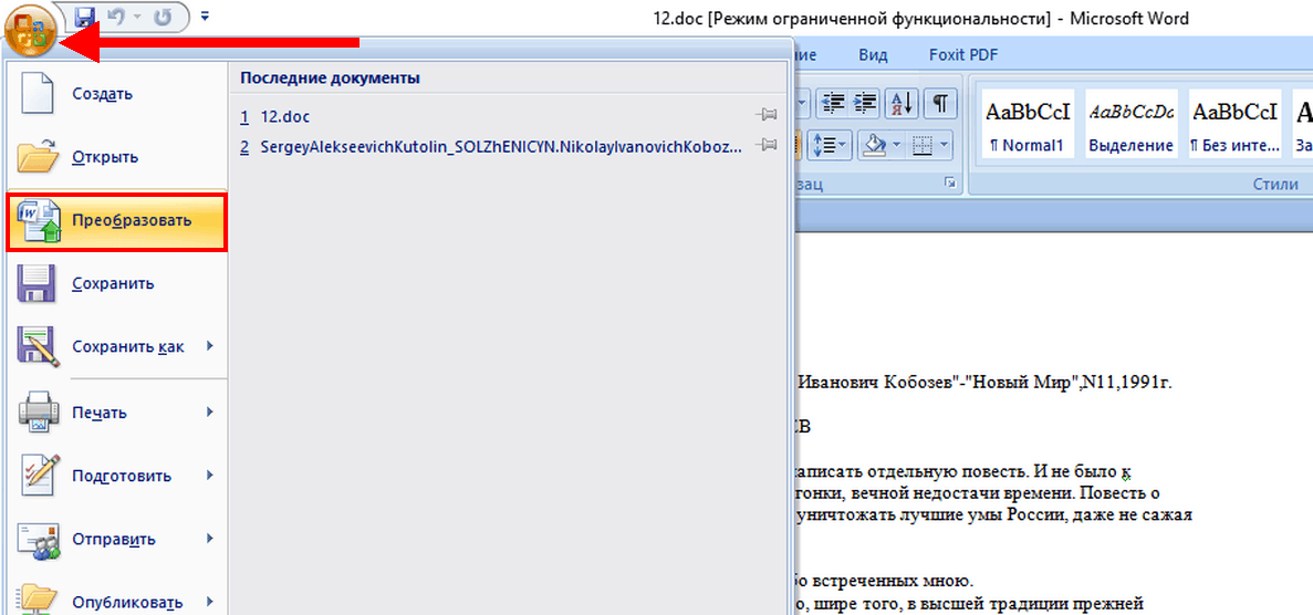 - 2 Як прибрати режим обмеженої функціональності Word 2007: дієві варіанти №1