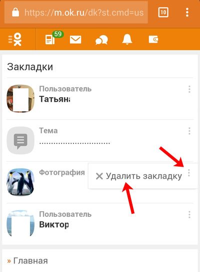 - 3 Як видалити закладки зі сторінки в Однокласниках через мобільну версію сайту