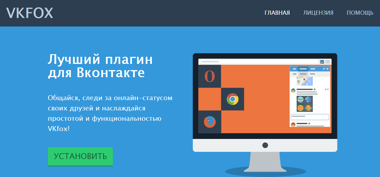 VkFox — безкоштовне розширення, з допомогою якого можна брати участь у житті Вконтакте залишаючись оффлайн. Підтримується в браузерах Chrome, Firefox і Opera. На головному сайті описаний весь докладний функціонал, для того, щоб почати користуватися, потрібно встановити розширення (кнопка «Встановити»), потім авторизуватися. Після вищевказаних дій з’явиться значок (), після натискання на який вам відкриється інтерфейс Вконтакте.