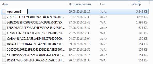 Знаходимо потрібний файл, це і є ваша пісня. Перейменовуємо його, ставлячи розширення mp3, і копіюємо в бажане місце у себе на жорсткому диску.