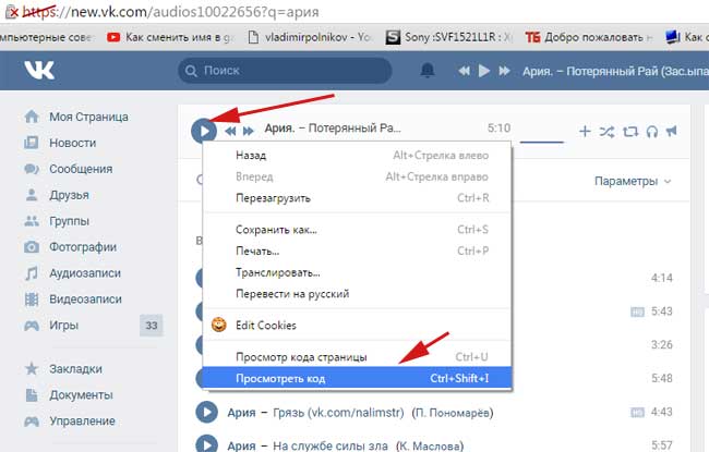 - 1 Качаємо пісню з вк за допомогою аналізу коду сторінки