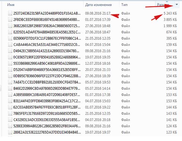 Знаходимо кеш в браузері і дивимося на вміст папки. Сортуємо файли за розміром, потім за датою зміни. Розмір файлу повинен приблизно дорівнювати розміру завантажується вами пісні, а час і дата збігатися з часом, коли ви відтворювали цю пісню у себе в аудіозаписах Вконтакте:
