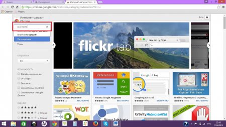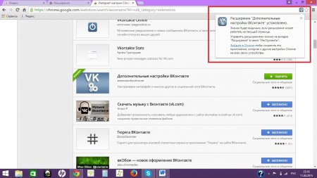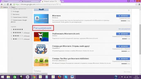 7. З’явилися результати пошуку. Тут можна побачити різні додатки, які пов’язані з соц. мережею «Вконтакте», а так само розширення. Власне розширення нам і потрібні. Натискаємо.