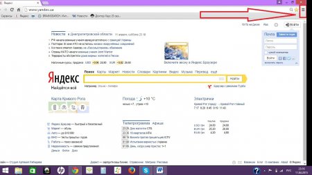 2. В моєму випадку відкрилася стартова сторінка «Яндекс». Нею ми користуватися не будемо. У правому верхньому куті ти побачиш, що то схоже на квадратик з смужечок. Потрібно на неї натиснути. Це налаштування браузера. Натиснули.