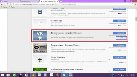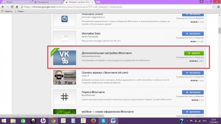 8. Гортаємо вниз і знаходимо ось таке розширення, під назвою «Додаткові налаштування ВКонтакте». Чому саме це розширення? Тому що, на мій погляд, воно саме стабільне, просте і зрозуміле, сам ним користуюся. Але ви можете спробувати вибрати інше.