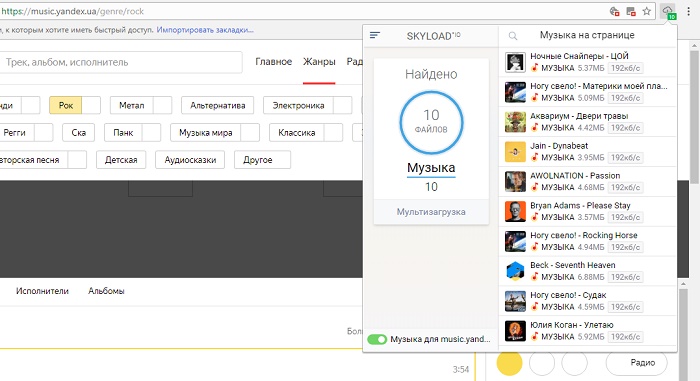 - Skyload — універсальне розширення для безкоштовного завантаження пісень з Яндекс.Музика