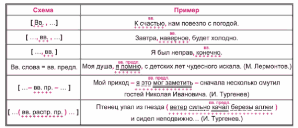 На ввідні слова вказують літери “ВВ”, відокремлюються від інших частин на схемі двома вертикальними рисами і обов’язково тими знаками пунктуації, які оточують їх у реченні.