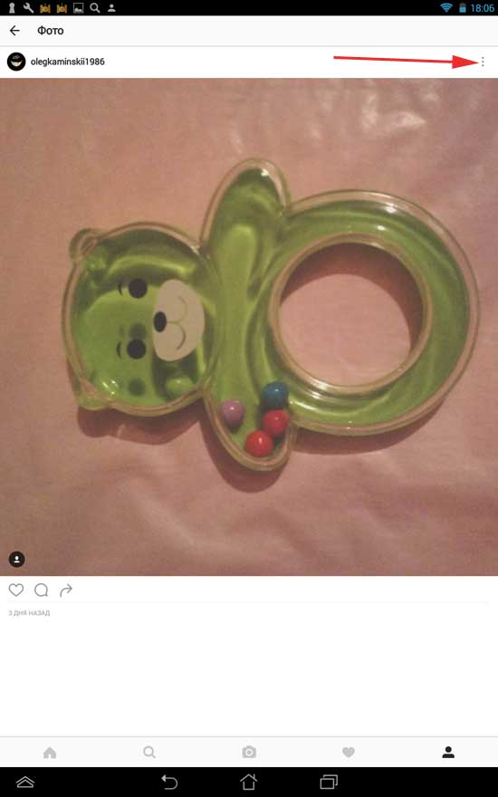 Знаходимо необхідну фотографію і правому верхньому куті натискаємо на меню у вигляді трьох вертикальних точок: