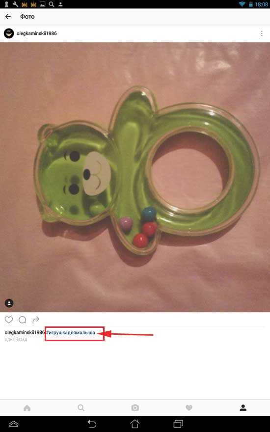 У моєму випадку – це #игрушкадлямалыша. Як видно, всі три слова злито написані.