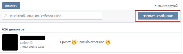 На своїй сторінці заходимо в розділ «Мої повідомлення», в правому верхньому куті шукаємо кнопку «Написати повідомлення» і натискаємо на неї.