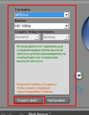 Про те як монтувати і що робити в іншій статті, а зараз перейдемо як зберігати відео. Переходимо до Висновку файлу.