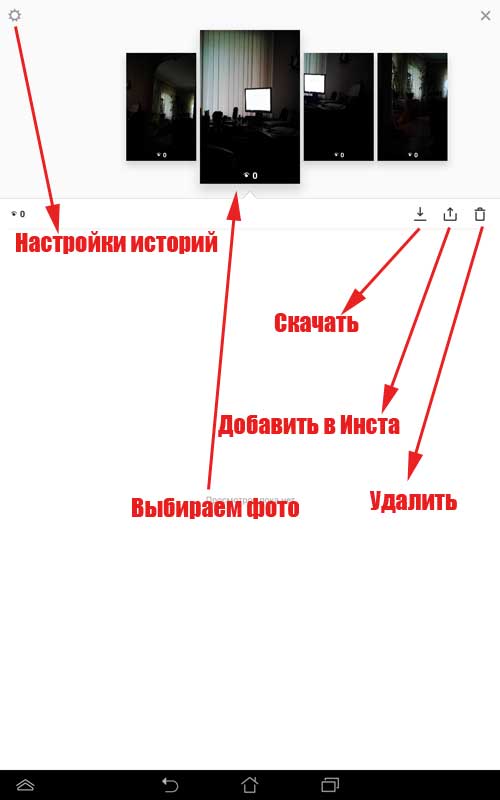 Як видно з скріншоту, ми можемо вибрати будь-яку фотографію з історії, після чого завантажити її собі на телефон або додати в instagram вже безпосередньо в свої пости.