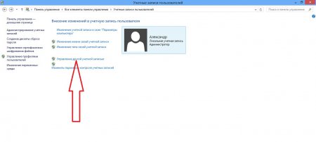 2. Відкриється вкладка «Облікові записи користувачів». Вам необхідно відшукати команду «Управління іншого облікового запису» і натиснути на неї.